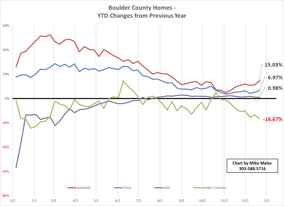 I recently had lunch with another stat watcher and we discussed the 2026 outlook for the Boulder County market. Neither of us saw much on the horizon that would generate significant change in our market and agreed there were greater odds for a downside change rather than an upside breakout. The one chance of an accelerating market in 2026, in my opinion, would be driven by much lower mortgage rates that somehow aren’t driven by a worsening economic outlook. The downside risks remain very similar to last year’s outlook, uncertainty that has held many markets player in place, whether that be mortgage rate uncertainty, national economic uncertainty, and/or uncertainty over the continued changes to the overall real estate industry itself. As always, the market data will show us the way!